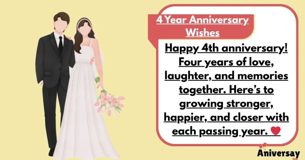 Looking for the perfect words to celebrate your special day? These 4 Year Anniversary Wishes help you express love, joy, and gratitude in a simple, heartfelt way.